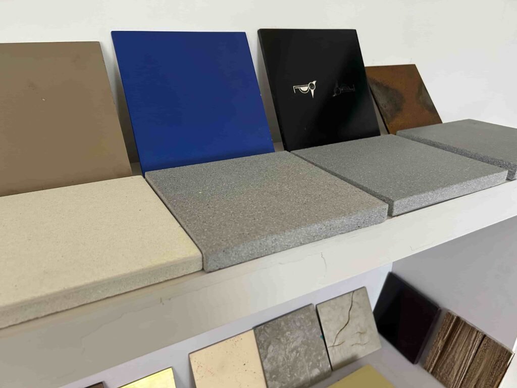 Some services it offers are GFRC cladding, panels, and products with different color combinations.